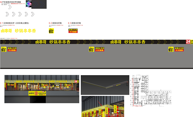 5、在鹵串哥的門店中,廣告裝飾成了門店最鮮明的一個風格。各種軟膜燈箱畫面、軟膜燈箱文案、發光字、立體字等,手繪墻,加起來100多項廣告制作,很好地增添了門店的熱鬧氛圍,傳達了品牌信息,形成了鹵串哥獨有的品牌體系,讓其他競爭者無法模仿。